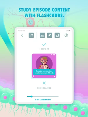 वीडियो से सीखने के बाद, अपनी समझ को और मजबूत करने के लिए, यह ऐप आपको पूरक फ्लैशकार्ड और इंटरैक्टिव क्विज़ का एक प्रभावशाली सेट प्रदान करता है। ये उपकरण आपको महत्वपूर्ण अवधारणाओं को संशोधित करने और याद रखने में मदद करने के लिए डिज़ाइन किए गए हैं। वर्तमान में, एनाटॉमी और फिजियोलॉजी, केमिस्ट्री, और ऑर्गेनिक केमिस्ट्री के प्रत्येक एपिसोड के लिए फ्लैशकार्ड डेक उपलब्ध हैं। हमारा लक्ष्य आपको सर्वोत्तम सीखने का अनुभव प्रदान करना है, और इसीलिए हम लगातार नई सामग्री और विषयों को जोड़ते रहेंगे, ताकि आपकी सीखने की भूख कभी शांत न हो।
