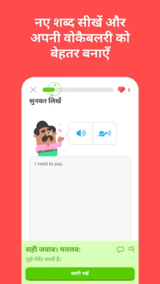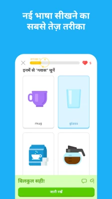 भाषा सीखने के अनुभव को क्रांतिकारी बनाने वाला Duolingo, दुनिया भर में करोड़ों शिक्षार्थियों का पसंदीदा मंच है। भाषा विशेषज्ञों द्वारा सावधानीपूर्वक तैयार किए गए इस ऐप पर, आप वास्तविक जीवन की बातचीत के लिए स्पैनिश, फ्रेंच, जापानी, कोरियाई, जर्मन और इंग्लिश जैसी कई भाषाओं में महारत हासिल कर सकते हैं। चाहे आपकी प्रेरणा यात्रा हो, शैक्षिक लक्ष्य हों, पेशेवर उन्नति हो, परिवार और दोस्तों से जुड़ना हो, या बस अपने मस्तिष्क को सक्रिय रखना हो, Duolingo आपको आनंददायक और अत्यंत प्रभावी तरीके से सीखने में मदद करता है।