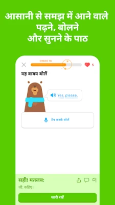 Duolingo की खासियत इसके मज़ेदार और असरदार शिक्षण विधि में निहित है। खेल जैसे पाठ, आकर्षक पात्रों और वैज्ञानिक रूप से प्रमाणित शिक्षण प्रणाली के साथ, यह आपको पढ़ने, लिखने, बोलने और सुनने के सभी कौशलों को मजबूत करने का अवसर देता है। अपनी दैनिक प्रगति को सहजता से ट्रैक करें, रोमांचक पुरस्कार अर्जित करें, और अपनी सीखने की यात्रा में नए मील के पत्थर हासिल करें। यह विधि सुनिश्चित करती है कि सीखी गई भाषा लंबे समय तक आपकी स्मृति में स्थायी बनी रहे।