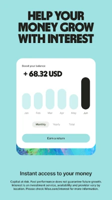 Wise सिर्फ एक मुद्रा ऐप से कहीं अधिक है; यह आपके धन को प्रभावी ढंग से बढ़ाने का भी अवसर प्रदान करता है। यूके, सिंगापुर और कई EEA देशों में, आप कुछ ही टैप में 'ब्याज' या 'स्टॉक' जैसी सुविधाओं को आज़मा सकते हैं, हालांकि पूंजी जोखिम पर है और वृद्धि की गारंटी नहीं है। व्यवसायों के लिए, Wise एक बेहतर वैश्विक खाता प्रदान करता है। बेहतर विनिमय दर पर चालान और बिलों का तेजी से भुगतान करें, और दुनिया भर के ग्राहकों से भुगतान प्राप्त करने के लिए खाता विवरण का उपयोग करें। Amazon, Stripe, Xero और अन्य समर्थित प्लेटफार्मों से सहजता से जुड़ें। Wise को दुनिया भर के स्थानीय अधिकारियों द्वारा विनियमित किया जाता है, जो आपको अपनी अंतर्राष्ट्रीय वित्तीय यात्रा में विश्वास और मन की शांति प्रदान करता है।